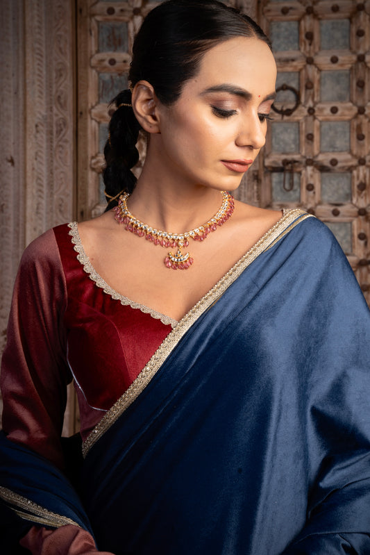 DEEP BLUE VELVET SAREE