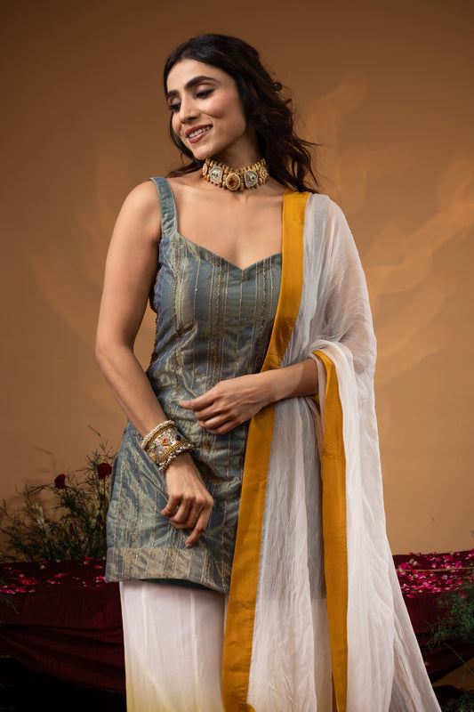 Chrome Tissue Silk Hand Embroidered Kurta Set