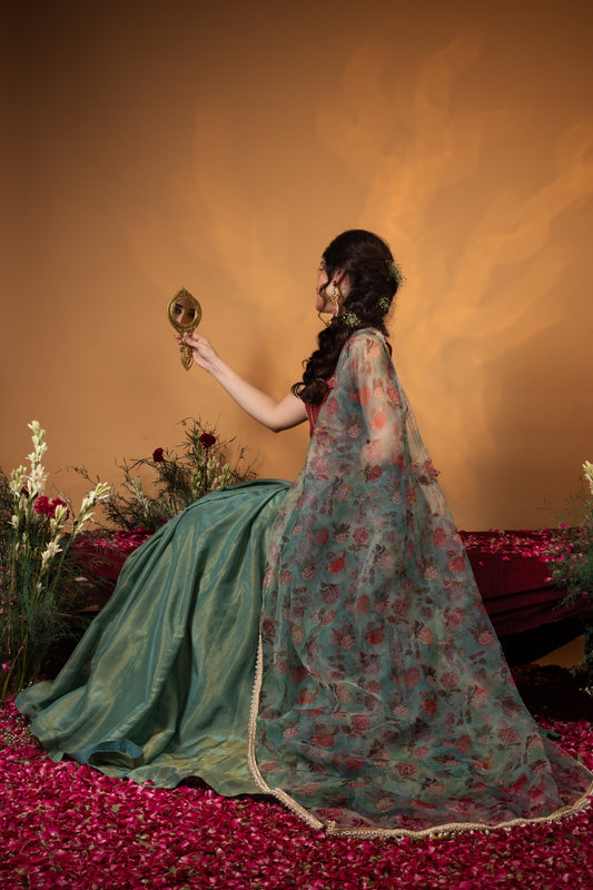 Chrome Red & Green Lehenga Choli