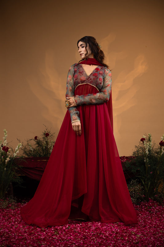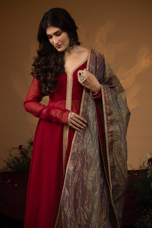 Deep Red Georgette Anarkali Set
