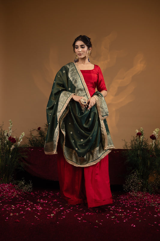 Bottle Green Upada Silk Kurta Set