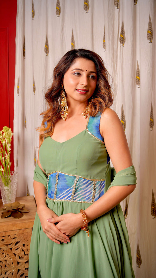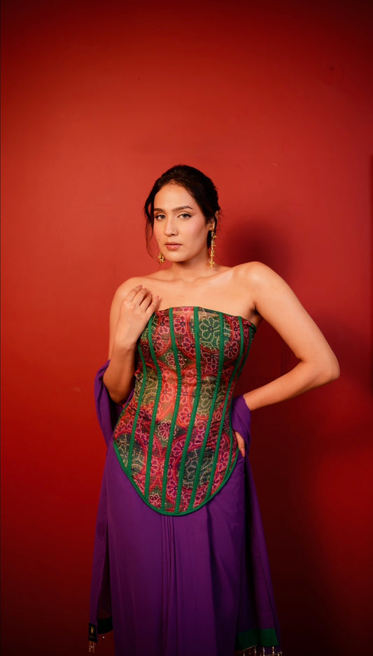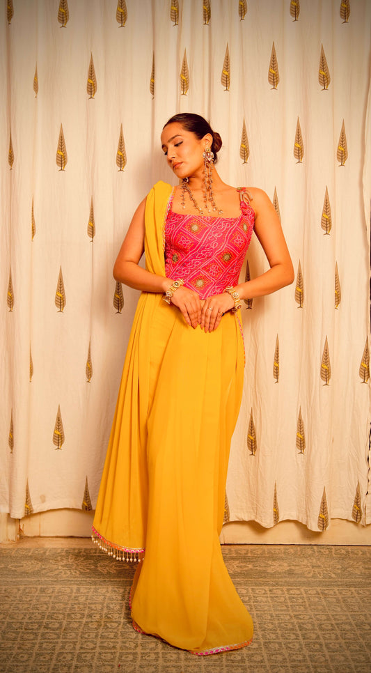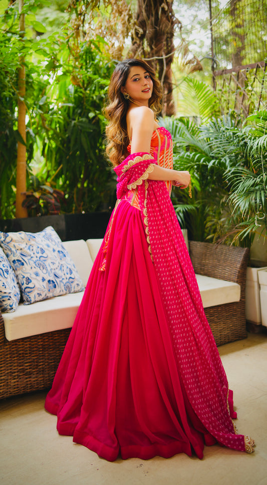 Pink & Orange Leheriya Bandhani Corset Lehenga set