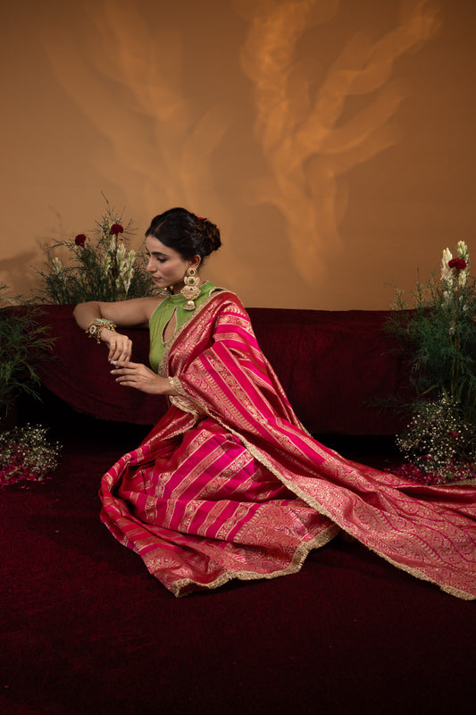 Pre-Draped Hot Pink Banarasee Silk Saree